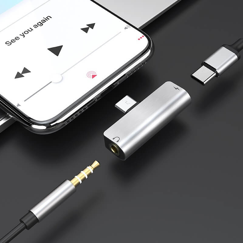 Hoco Μετατροπέας USB-C male σε 3.5mm / USB-C female Ασημί 1τμχ