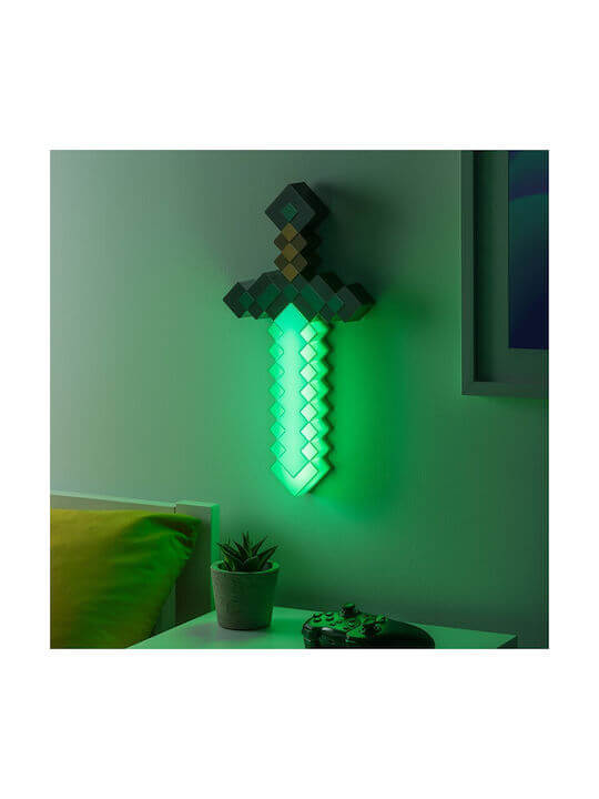 Φωτιστικό 3D σε σχήμα διαμαντένιου σπαθιού από το Minecraft. Στο παιχνίδι, το σπαθί χρησιμοποιείται ως μεσαίο όπλο και είναι αποτελεσματικό για την απομάκρυνση ιστών αράχνης.