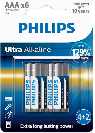 - Philips Ultra Αλκαλικές Μπαταρίες AAA 1.5V 6τμχ
